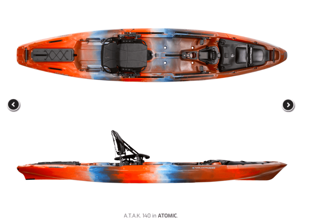 The A.T.A.K. 140 by Wilderness Systems is a high-performance kayak that is designed for anglers and adventurers. It is 14 feet long and has a maximum capacity of 550 pounds, making it a great option for larger individuals or those who need to carry a lot of gear. The kayak is made with a durable, high-density polyethylene material that is both strong and lightweight.